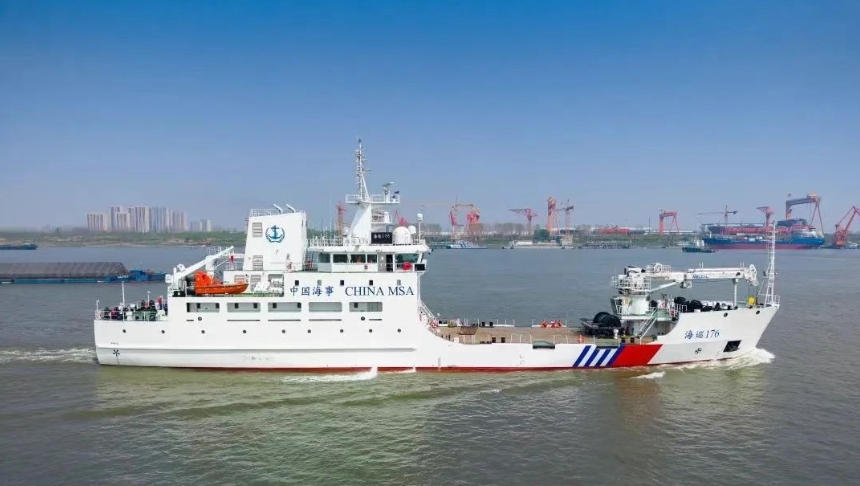 “海巡176”滿(mǎn)載排水量約為2450噸,續航力5000海里,采用全電力驅動(dòng),主要負責南海海區各港口及航道的航標布設、起吊、維護以及應急搜救等任務(wù),同時(shí)兼具海上溢油處置、海事應急搜救、值守人員交通、物資補給、無(wú)線(xiàn)電導航信號監測等多重功能。
