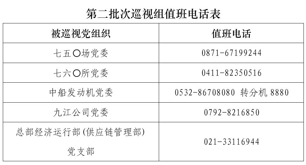 巡視期間,集團公司黨組巡視組設置值班電話(huà)和聯(lián)系信箱,主要受理反映被巡視黨組織領(lǐng)導班子及其成員、下一級黨組織領(lǐng)導班子主要負責人和重點(diǎn)崗位領(lǐng)導干部問(wèn)題的來(lái)信、來(lái)電、來(lái)訪(fǎng),重點(diǎn)關(guān)注違反政治紀律、組織紀律、廉潔紀律、群眾紀律、工作紀律、生活紀律以及巡視整改等方面問(wèn)題反映。第二批次巡視受理信訪(fǎng)截止時(shí)間為8月18日。
