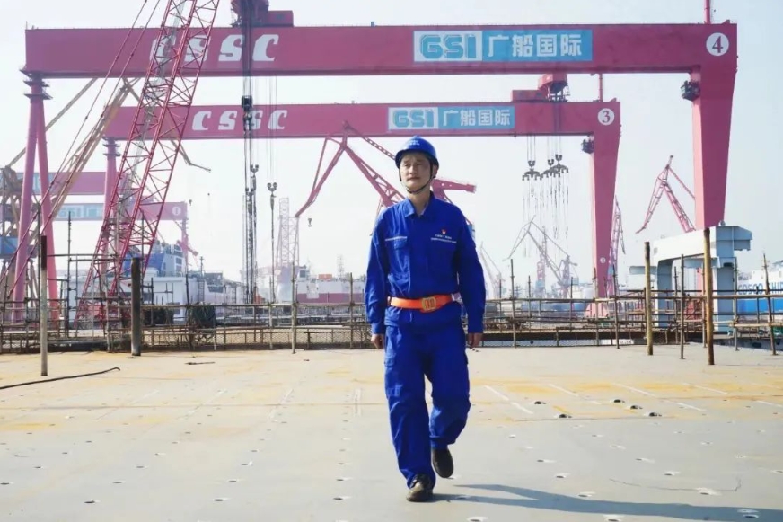 中船集團、智領(lǐng)深藍。在廣船國際高質(zhì)量發(fā)展向更高的山峰進(jìn)發(fā)的征途上,馮文虎正手握焊槍?zhuān)砸晃淮髧そ车膿?,在鋼與火的交匯中,篆刻著(zhù)建設海洋強國的錚錚誓言。