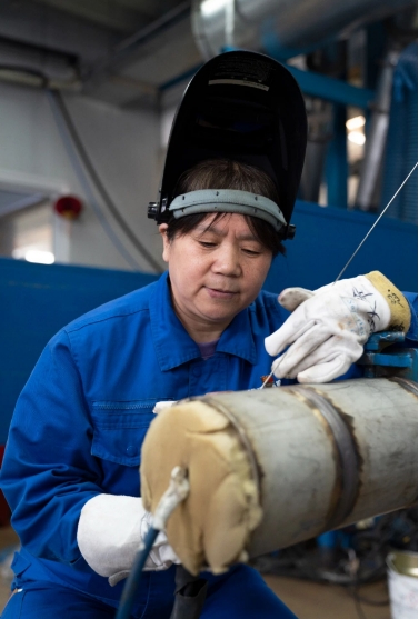 至今,朱瑞霞已經(jīng)參與了“遠望”系列船、“雪龍2”號、南昌艦等國家重點(diǎn)項目的焊接工作。她說(shuō),當時(shí)有人高度評價(jià)稱(chēng):“你焊的管子可以免檢?!钡珘毫σ搽S之而來(lái),“我當時(shí)就想,船一出海就是半年,我的焊接要是出問(wèn)題,就是人命關(guān)天?!闭且驗檫@種“軸”,朱瑞霞先后攻克了鎳銅管焊接變形、HDR不銹鋼焊接、鈦合金焊接等一系列高難度問(wèn)題。她主導研發(fā)了十余項焊接專(zhuān)利技術(shù),攻克了薄壁管道焊接難題,還創(chuàng )新研制了特有的工裝,獲得外國專(zhuān)家的認可和推廣應用。