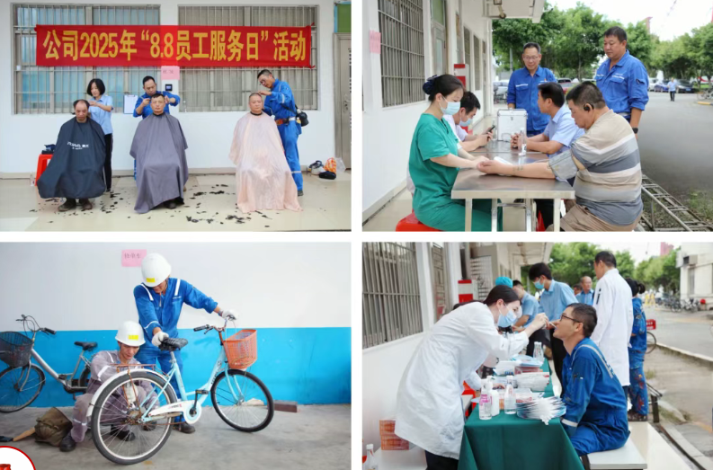 服務(wù)日當天,廣船國際所屬文沖修造設置了量血壓、理發(fā)、縫補衣服、修理自行車(chē)、磨刀具、健康咨詢(xún)、口腔義診等多個(gè)義務(wù)服務(wù)項目,以貼心實(shí)用的便民舉措為勞務(wù)工送去關(guān)懷與便利,讓服務(wù)日充滿(mǎn)暖心氛圍。